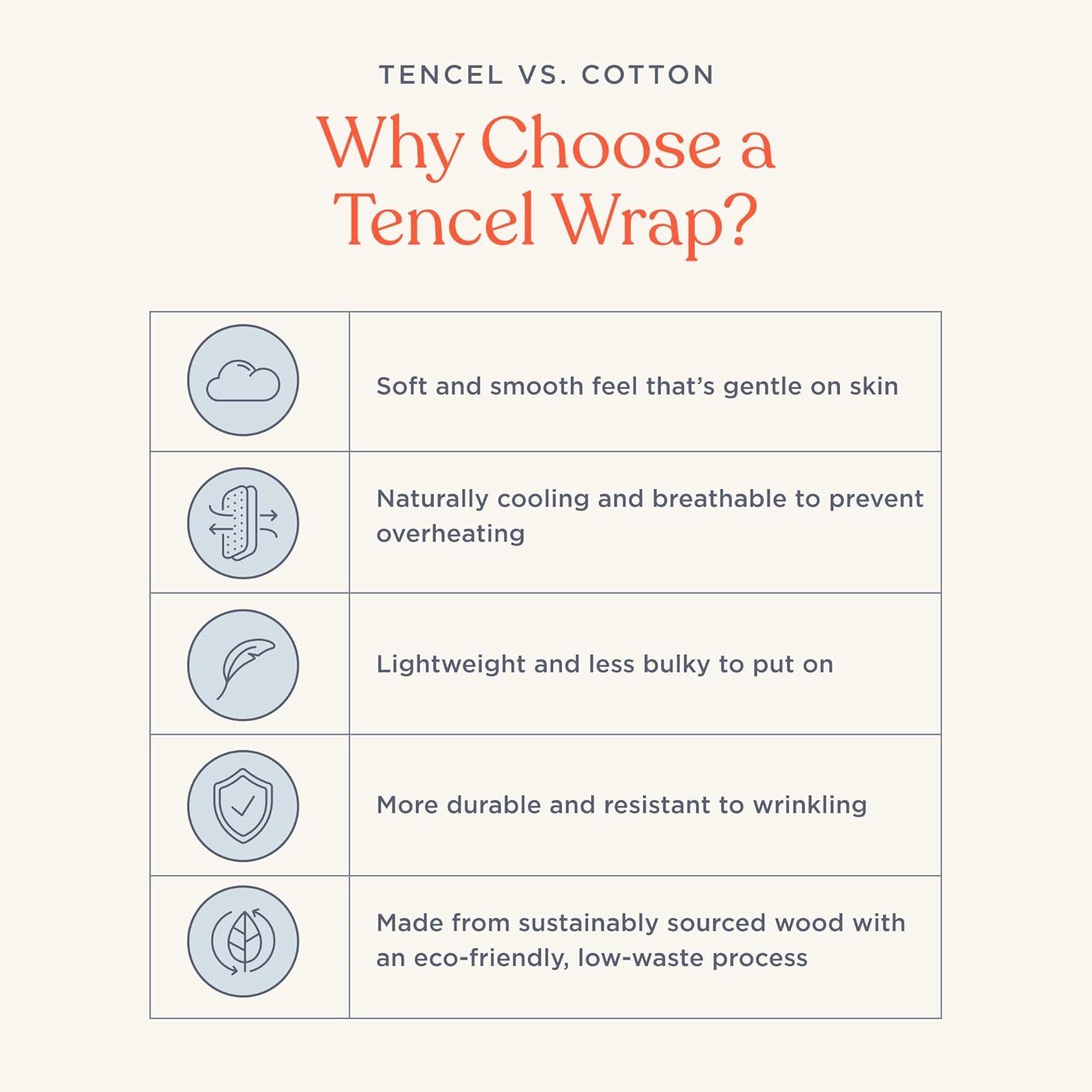 - SUSTAINABLY SOURCED FABRIC: Made with 100% TENCEL Lyocell fibers from responsibly sourced wood, this baby wrap is gentle on your baby’s skin and the planet. Certified biodegradable and Oeko-Tex Standard 100 certified for safety and sustainability.